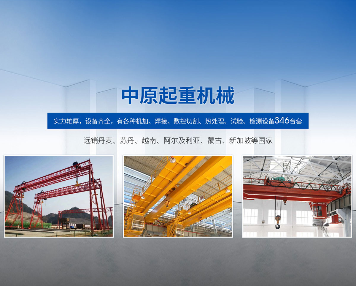 新鄉(xiāng)市中原起重機械有限公司成立于2000年,地處中原,輻射全國28個省市自治區(qū),設(shè)外埠經(jīng)銷處、辦事處268個。產(chǎn)品行銷工礦、建材、化工、冶金、電力、交通、鐵路、油田、港口等各個行業(yè)。遠銷丹麥、蘇丹、越南、阿爾及利亞、蒙古、新加坡等國家。  公司實力雄厚,設(shè)備齊全,有各種機加、焊接、數(shù)控切割、熱處理、試驗、檢測設(shè)備7臺;有機加工、熱處理、單、雙梁橋門機生產(chǎn)、檢測、安裝等9個車間,研究中心、運輸公司、安裝維修服務公司等機構(gòu),?  主要產(chǎn)品有:LD型1~20噸電動單梁起重機系列產(chǎn)品;5~600噸通用橋式、門式、冶金、上旋轉(zhuǎn)下旋轉(zhuǎn)電磁吊、絕緣、抓斗、防爆起重機系列產(chǎn)品;LH3~100噸葫蘆雙梁系列產(chǎn)品;MH5~32噸葫蘆門式系列產(chǎn)品;0.5~40噸CD1、MD1鋼絲繩電葫蘆系列產(chǎn)品;HS1型0.5~20噸手動葫蘆系列產(chǎn)品;0.5~10噸環(huán)鏈電動葫蘆系列;0.5~40噸彎道電動葫蘆系列產(chǎn)品;裝卸橋、造船門機、架橋機、鑄造吊和水電大噸位起重機系列產(chǎn)品。  公司建立了強有力的質(zhì)量保證體系和生產(chǎn)過程的質(zhì)量控制系統(tǒng),嚴格執(zhí)行國家設(shè)計、生產(chǎn)標準,有嚴格的生產(chǎn)工藝過程和標準,嚴格的檢驗、檢測標準和手段。